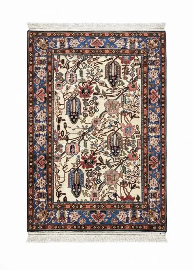 Bakhtiar rugs are known for their distinctive garden layouts divided into panels, often symbolizing cultivated landscapes. In particular, the structured compartments create clarity and visual organization. Moreover, the combination of cream and red tones enhances depth and decorative richness. As a result, these rugs offer artistic presence without overwhelming the space.